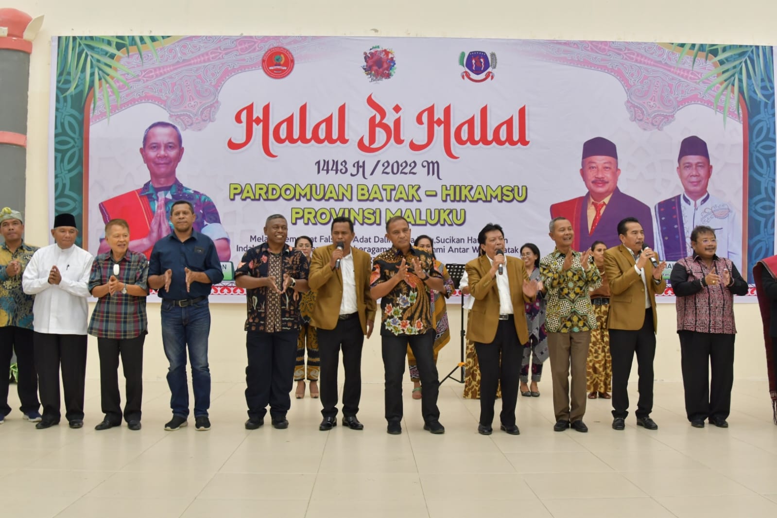 Halal bi halal 1443 H/ 2022 M bersama Pengurus Pusat Pardomuan Batak – Hikamsu Provinsi Maluku kali ini mengambil tema “Dengan Semangat Falsafah Adat Dalihan Na Tolu , Sucikan Hati Dalam Indahnya Kebersamaan dan Keragaman Silaturahmi Antar Warga Batak dan Keluarga di Perantauan”. Acara diawali dengan pembacaan ayat suci Al Quran dan Laporan Ketua Panitia Kolonel Anggit Tambunan, serta hiburan dari artis Trio Ambisi yang didatangkan langsung dari Medan, Sumatera Utara.