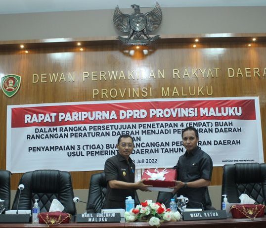 Masarikuonline.com, Rapat Paripurna DPRD Provinsi Maluku, 08 Juli 2022, dalam Rangka Persetujuan Penetapan 4 (empat) buah Ranperda Hasil Fasilitasi Kementrian Dalam Negeri menjadi Peraturan Daerah dan Paripurna Penyampaian 3 (tiga) buah Ranperda usul Pemerintah Daerah Tahun 2022 Yaitu :